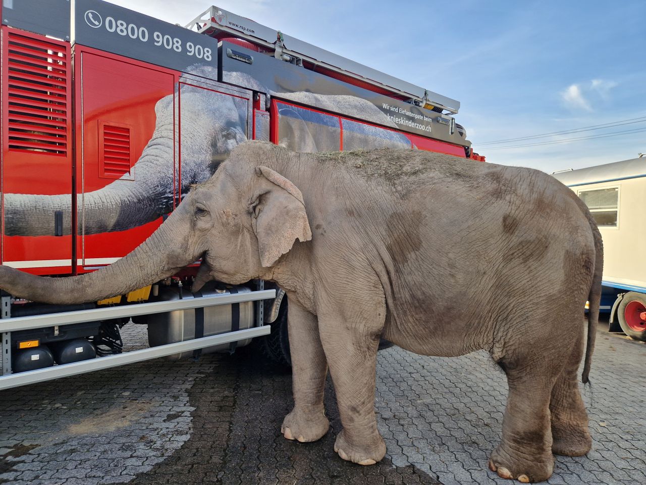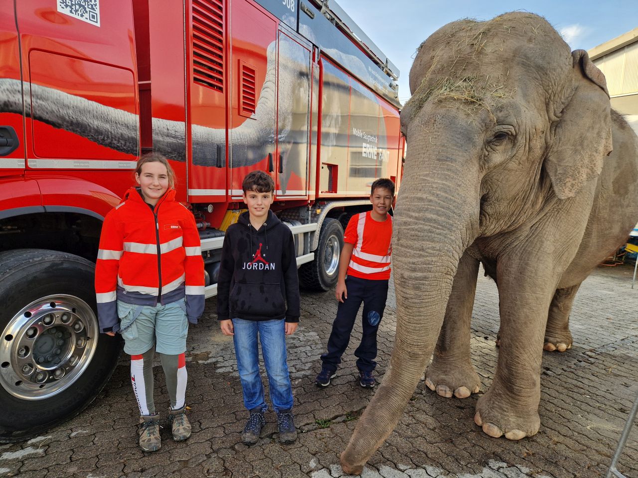 Zum Abschluss erwartete alle noch ein ganz besonderes Highlight, eine hautnahe Begegnung mit Elefantendame Ceylon. Sie hatte bereits vor zwei Jahren gemeinsam mit Franco Knie sen. die Taufe des Saugbaggers vorgenommen und somit war es bereits das zweite Zusammentreffen von Ceylon und unserem Ernefanten.