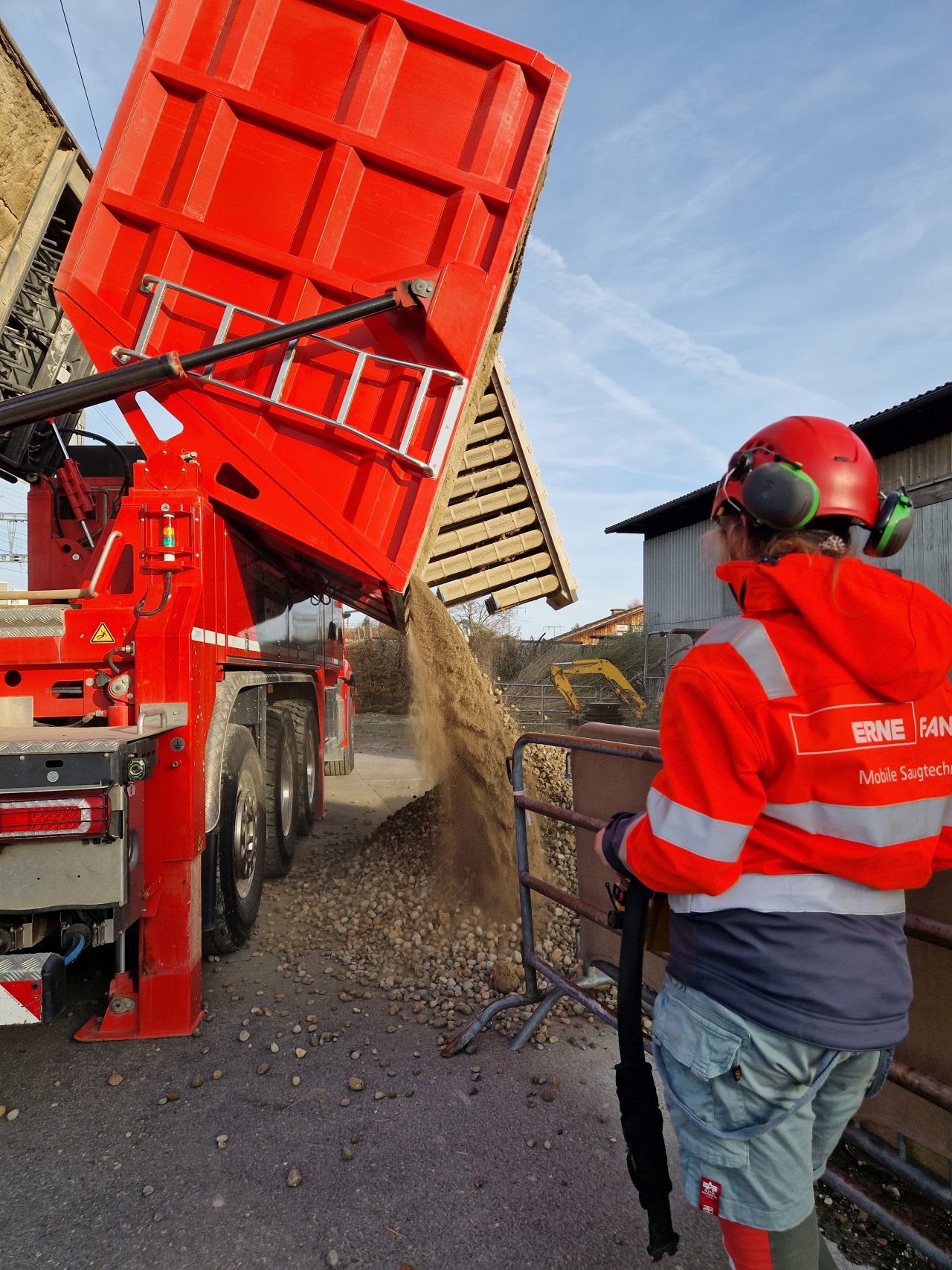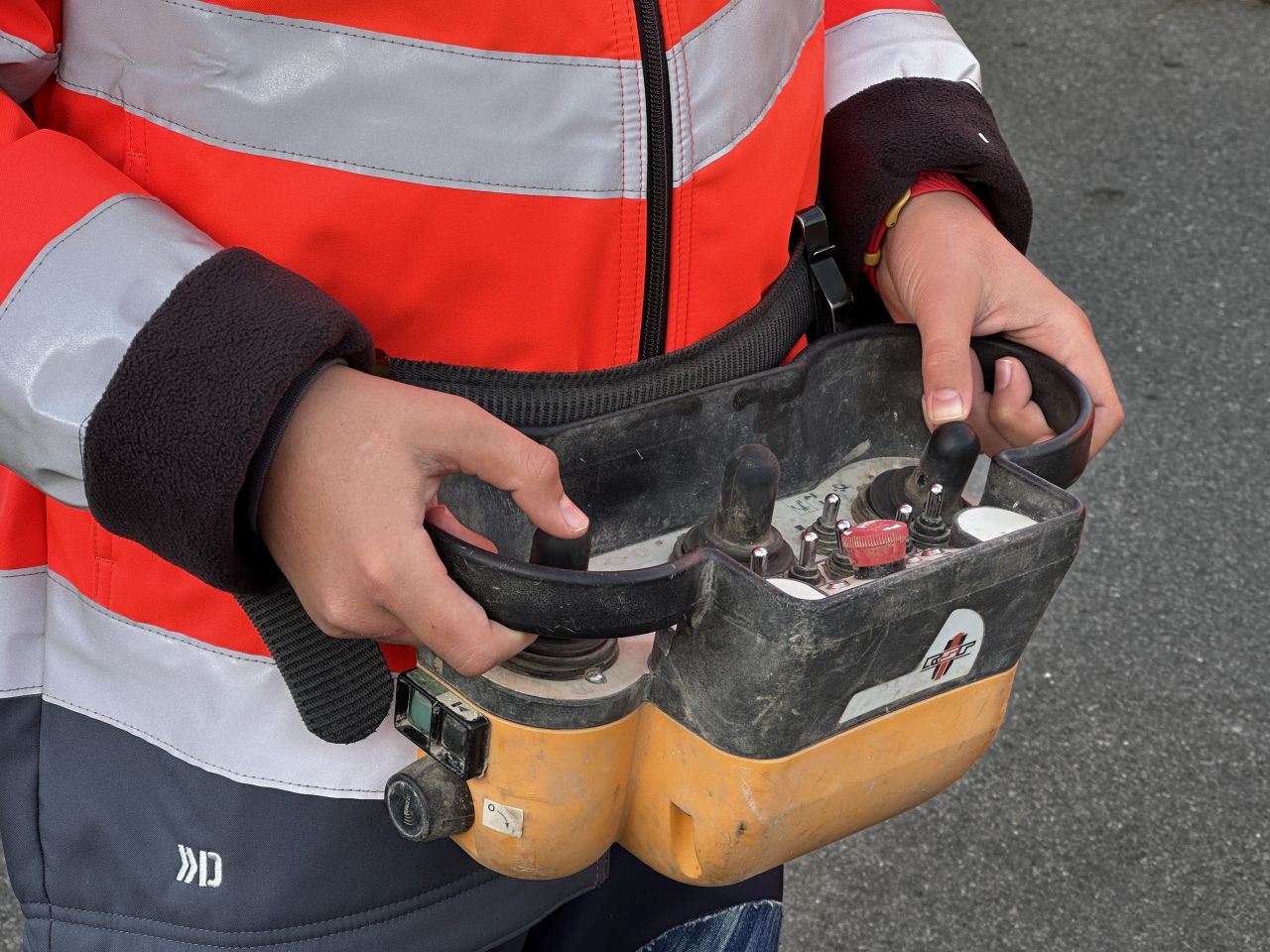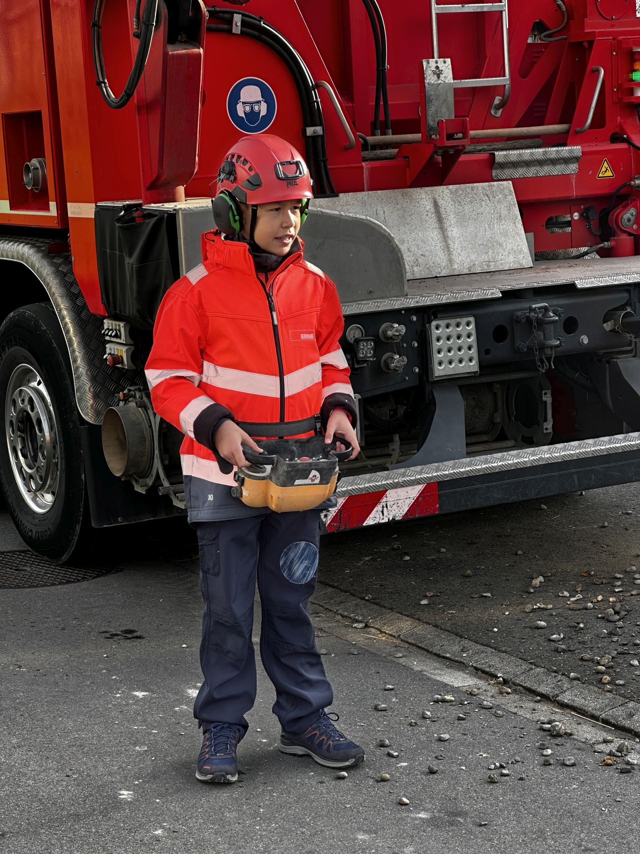 In eine völlig andere Welt tauchten die Kinder dann beim Saugbaggern ein. Ganz wie die Profis durfte jedes Kind per Fernsteuerung Material aufsaugen und den Behälter wieder entleeren. Die Möglichkeit, selbst ein solches Spezialfahrzeug zu bedienen, begeisterte alle Teilnehmenden und sorgte für viele staunende Gesichter.