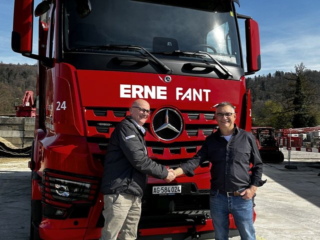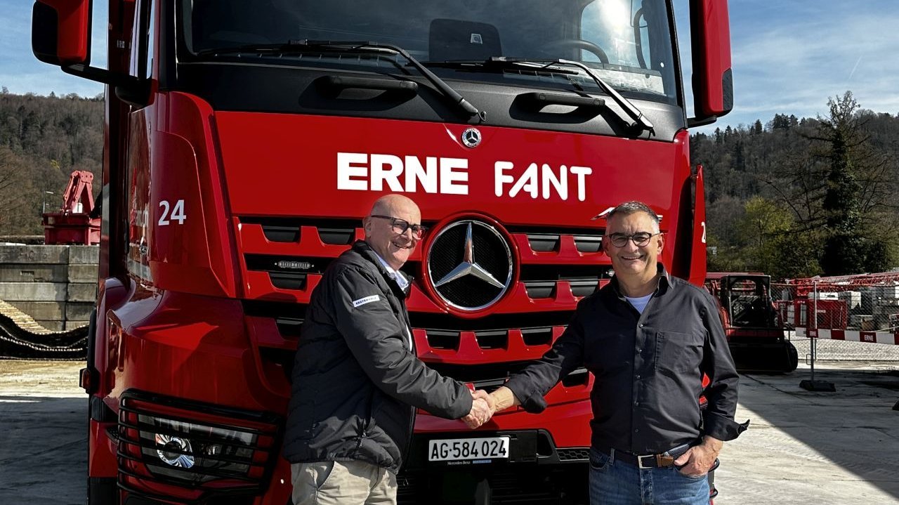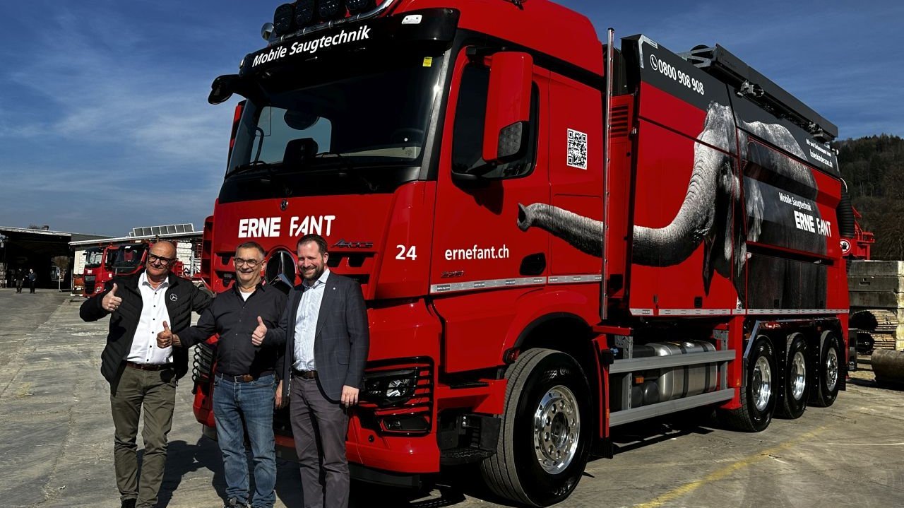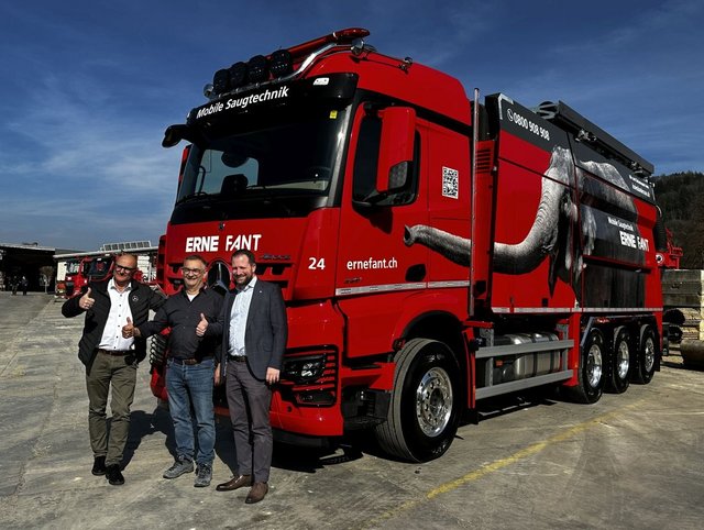 Wir freuen uns, den jüngsten Zuwachs in unserem modernen Maschinenpark bekannt zu geben. Am 24.03.2026 fand in Laufenburg die feierliche Übergabe für unseren neuen RSP Saugbagger ESE6 F1 statt. Das Fahrzeug ist auf einem robusten Mercedes-Benz Chassis aufgebaut, welches von der Kestenholz Automobil AG aus Pratteln stammt. Die Herren Stefan Kündig, Michael Brunner und Andreas Wangler (Kestenholz Automobil AG) waren zur Übergabe persönlich vor Ort.